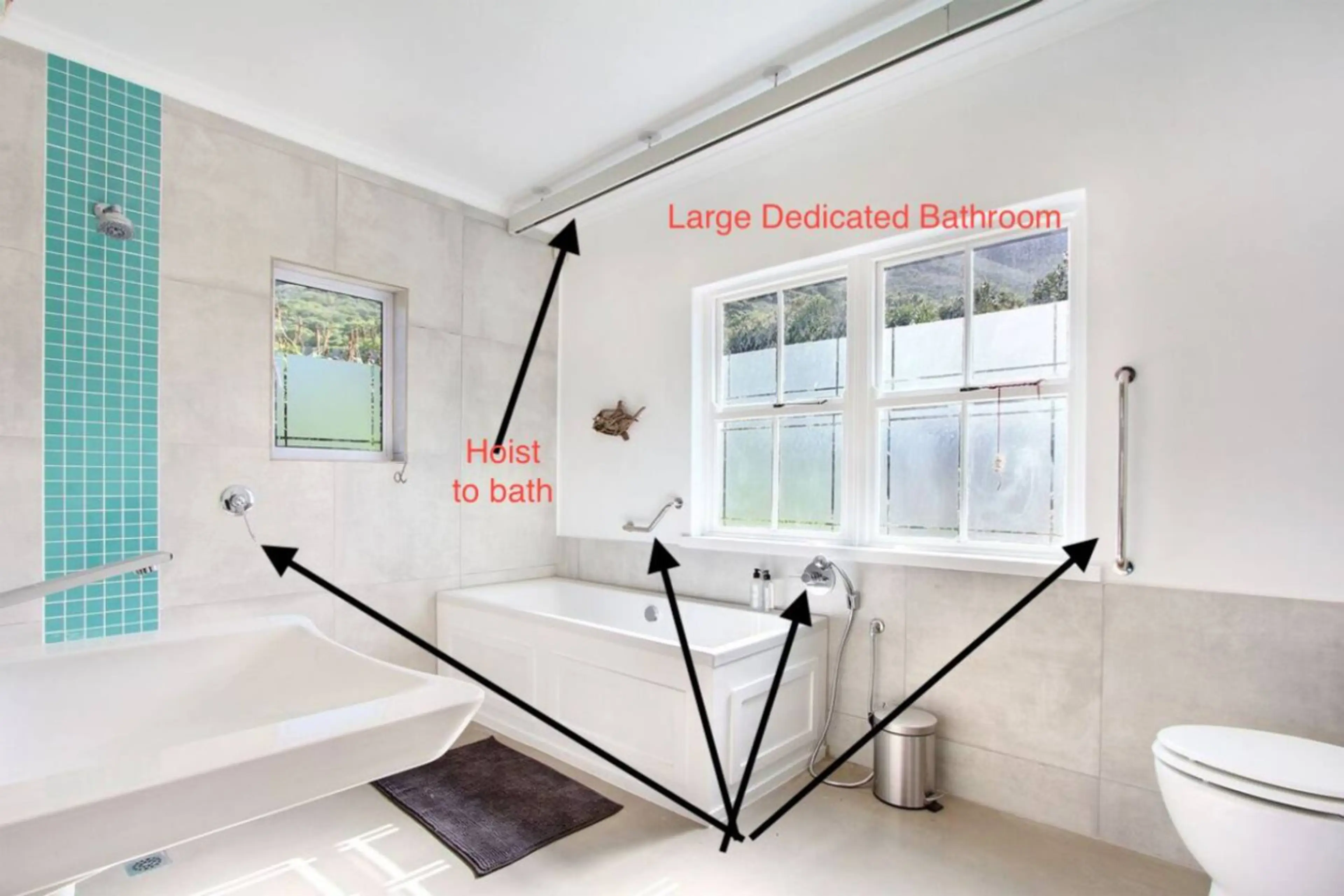 Beachfront comfort meets universal design in this 5-bedroom Noordhoek home. Watch waves crash from your balcony, just 100m from the sand. Fully wheelchair accessible with a pool lift, beach wheelchair, and between-floor lift. Solar backup power keeps the comfort flowing. Perfect for families and mix...